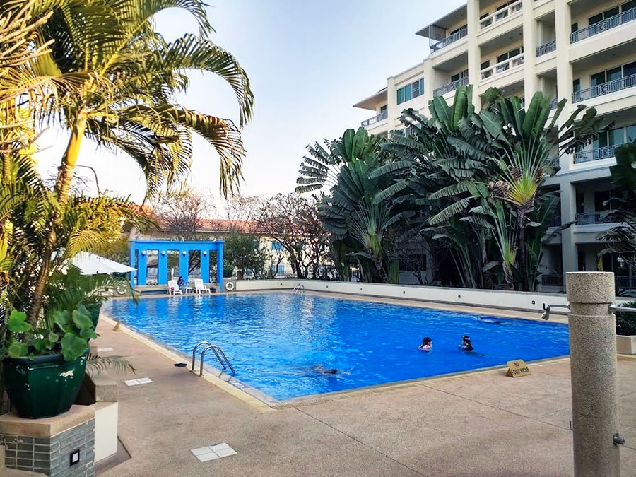 수영장이 엄청 큰 워터파크급은 아니지만, 야외에 있어서 휴양지 느낌 제대로 납니다. 선베드에 누워서 파란 하늘 보며 비어라오 한 캔 딱 따면...