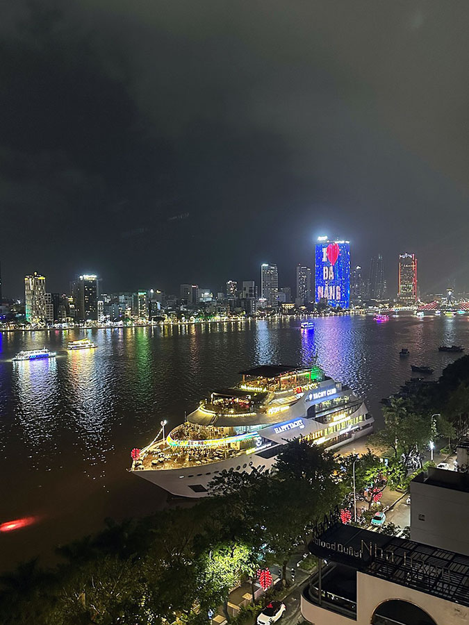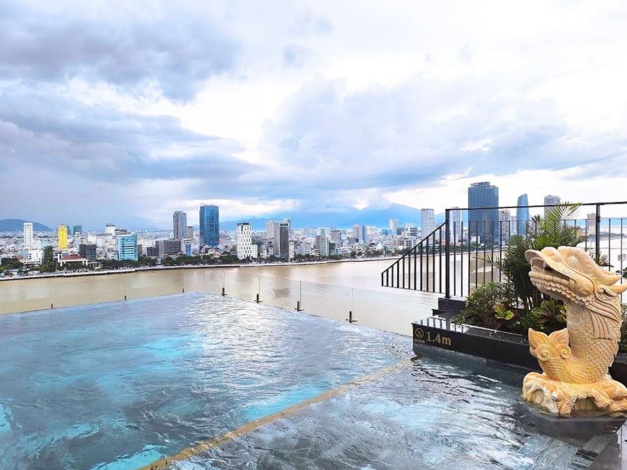 수영장 물에 몸 담그고 턱 괴고 있으면, 눈앞에 다낭 시내랑 한강이 파노라마로 펼쳐져요.