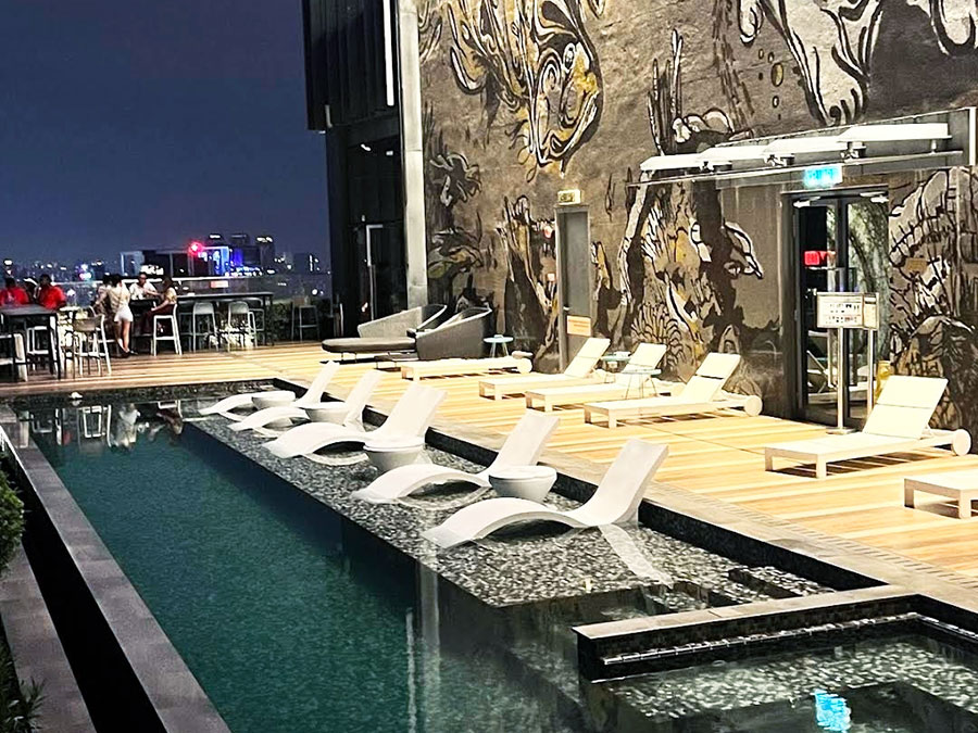수영장 너머로 트윈타워가 선명하게 보여서 물속에서 사진 찍으면 그냥 인생샷 확정입니다. 📸