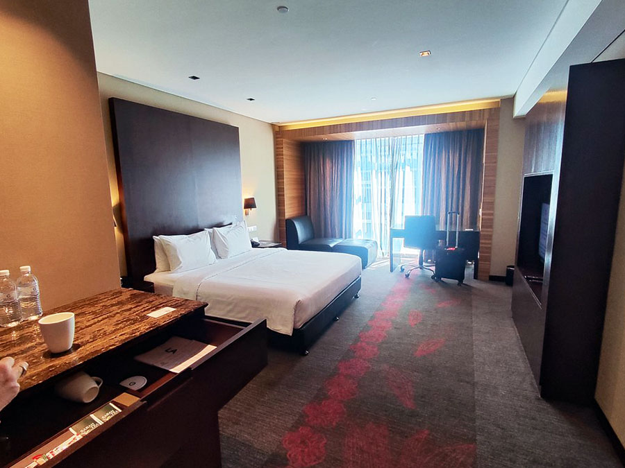 객실 문을 열자마자 탁 트인 코타키나발루의 푸른 바다가 반겨줍니다! ✨ 제가 묵었던 오션뷰 객실은 군더더기 없이 깔끔하고 넓어서 너무 만족스러웠어요.