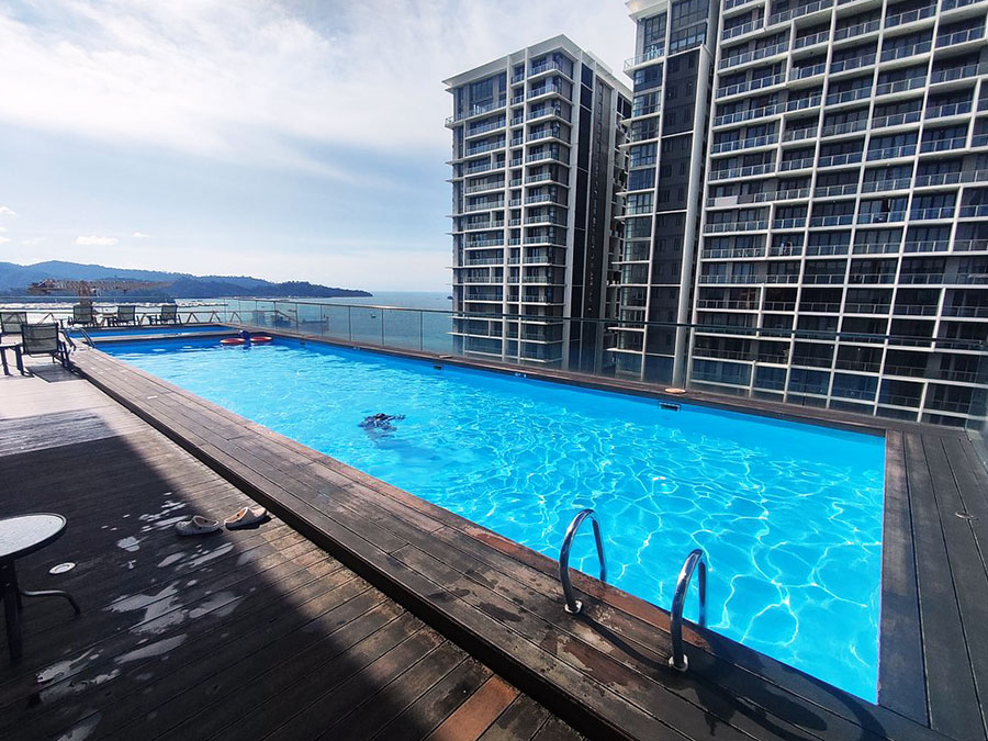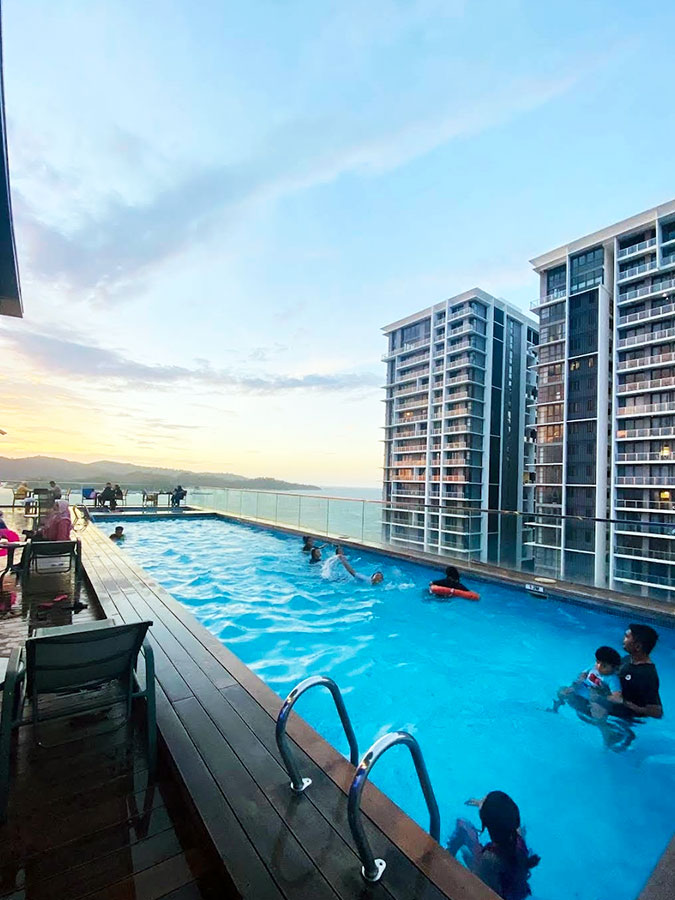 규모가 엄청 크진 않지만, 루프탑에서 바라보는 코타키나발루 스카이라인과 바다 뷰가 정말 예술이거든요.
