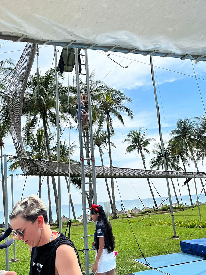 부대시설과 액티비티는 정말 셀 수 없을 정도예요! 💪 클럽메드의 꽃인 공중그네부터 양궁, 테니스, 골프 연습장까지 다 무료고요.
