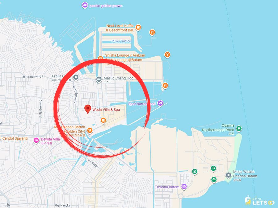 위치는 바탐의 핫플 중 하나인 벵콩(Bengkong) 지역에 있어요! 🚗 바로 근처에 바탐에서 제일 유명한 해산물 맛집 골든 프라운(Golden Prawn)이 걸어서 갈 수 있을 만큼 가깝고요.