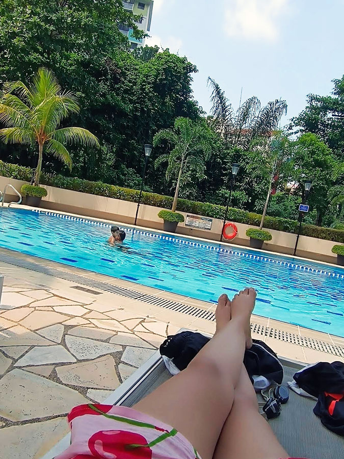 수영장 주변에 나무들이 많아서 마치 숲속에서 수영하는 기분이 들더라고요.