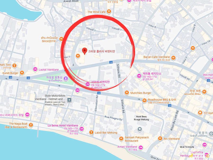 비엔티안의 활기찬 분위기와 호텔의 고요함을 동시에 누릴 수 있는 최적의 장소라고 자신 있게 말씀드려요! 📍