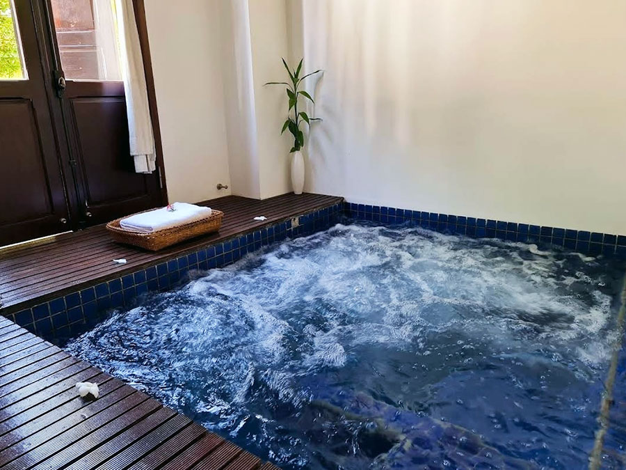 이곳에는 수영장이 없는 대신, 프라이빗하고 아늑한 스파 시설이 정말 잘 되어 있어요!