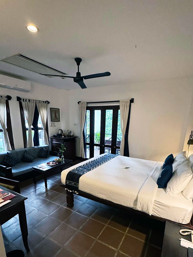 라오스 전통 소품들이 포인트로 놓여 있어서 사진 찍기에도 너무 예쁘고, 테라스에서 조용한 정원을 바라보고 있으면 세상 부러울 게 없더라고요.