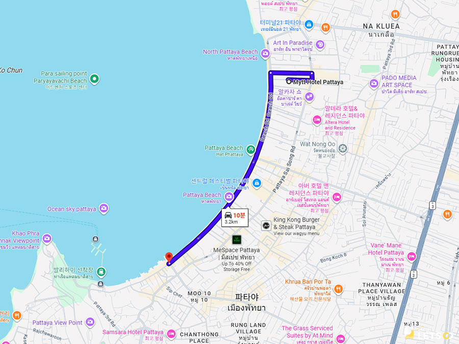 위치는 정말 '갓벽' 그 자체! 파타야 북부의 중심이라 터미널21 쇼핑몰까지 도보로 5~10분이면 갈 수 있고, 해변도 한 블록만 걸어나가면 바로예요.