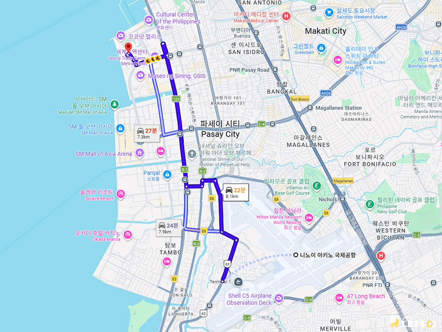 호텔은 CCP(필리핀 문화센터) 단지 내에 있어 주변이 조용하고 산책하기 너무 좋아요. 마닐라 최대 쇼핑몰인 SM 몰 오브 아시아(MOA)와도 차로 10분 거리라 쇼핑과 맛집 투어하기에도 최적의 동선이죠!