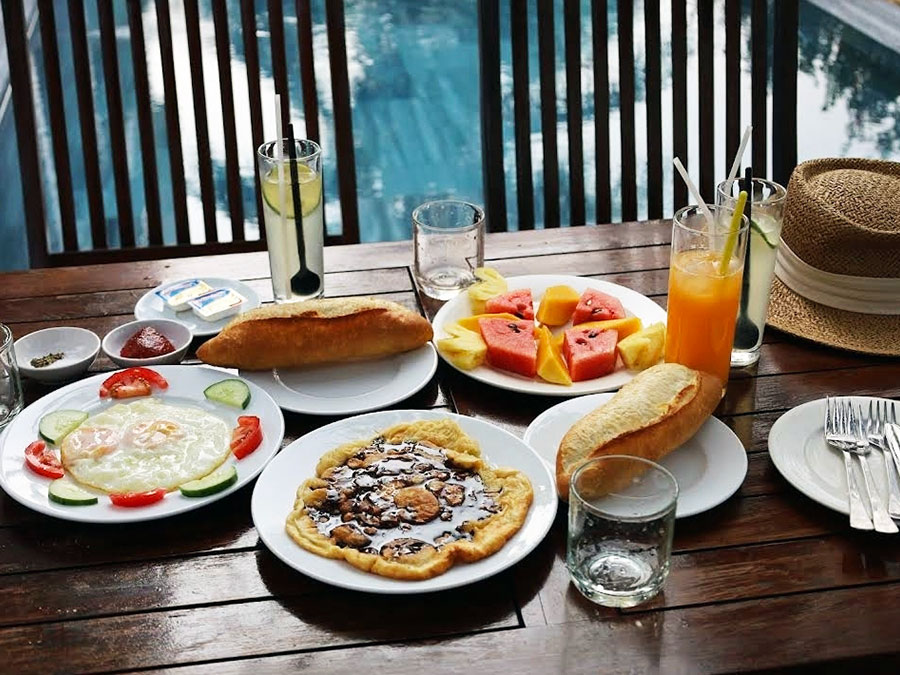 루나 빌라의 하이라이트는 역시 조식이에요. 메뉴판에서 고르면 즉석에서 만들어주시는데, 저는 라오스식 반미랑 쌀국수가 너무 맛있더라고요.