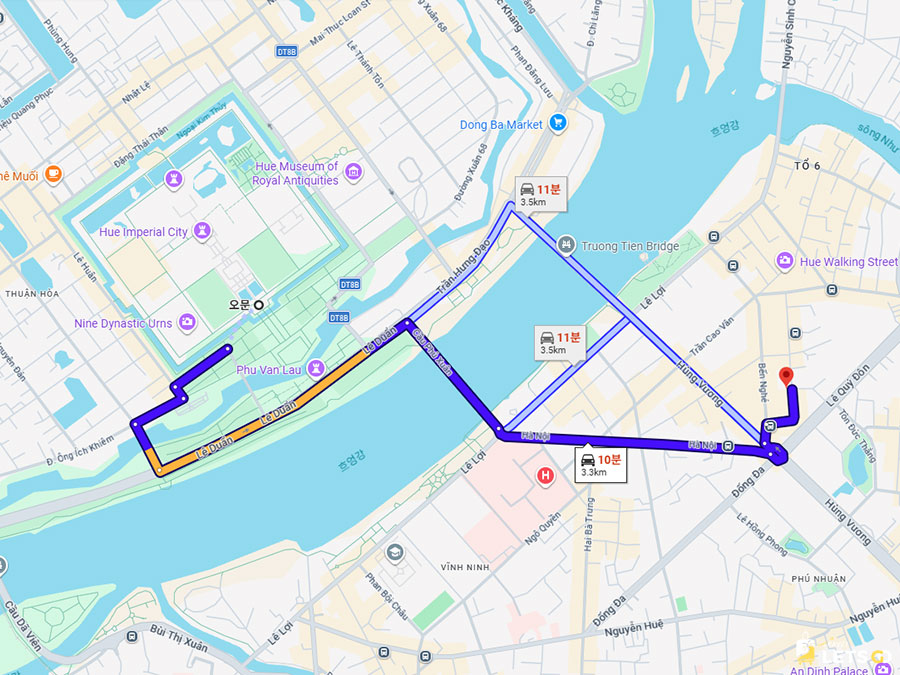 향강(Perfume River)이랑도 가깝고 걸어서 슬슬 현지 식당 투어하기 딱 좋은 위치! 후에 성까지는 차로 금방이라 관광과 휴양을 동시에 잡기에 이보다 좋을 수 없답니다. 🚗🗺️