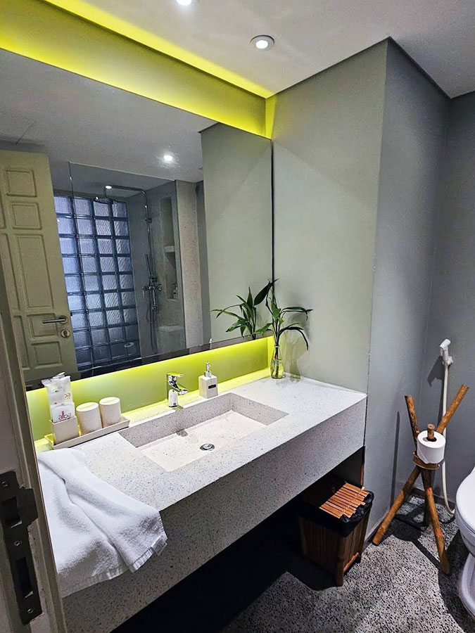 모던하면서도 베트남 특유의 따뜻한 분위기가 조화로워서 입구에서 사진 찍기에도 너무 좋았답니다. 🚿✨