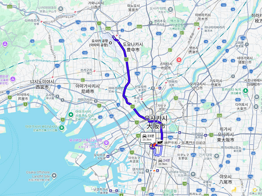 공항에서 라피트 타고 난바역 내려서 무거운 짐 끌고 고생할 필요가 전혀 없다는 게 최고의 장점! 도톤보리 구리코상까지도 걸어서 금방이라 밤늦게까지 야식 먹고 놀다가 들어오기에도 정말 부담 없답니다. 🚗📍