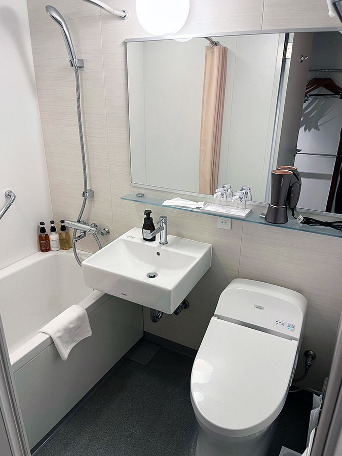 객실은 군더더기 없이 깔끔하고 모던한 스타일이에요! 저는 컴팩트한 룸에 묵었는데, 공간 활용이 기가 막혀서 전혀 좁게 느껴지지 않았어요.