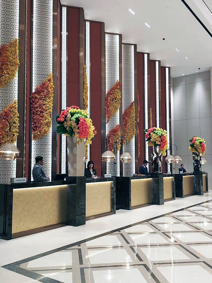로비에 들어서자마자 층고 높은 개방감과 화려한 샹들리에에 진짜 압도당했어요.