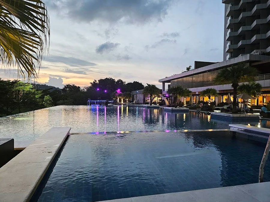 래디슨 바탐의 꽃은 역시 수영장이에요! 골프장을 내려다보는 야외 인피니티 풀 뷰가 진짜 예술입니다.