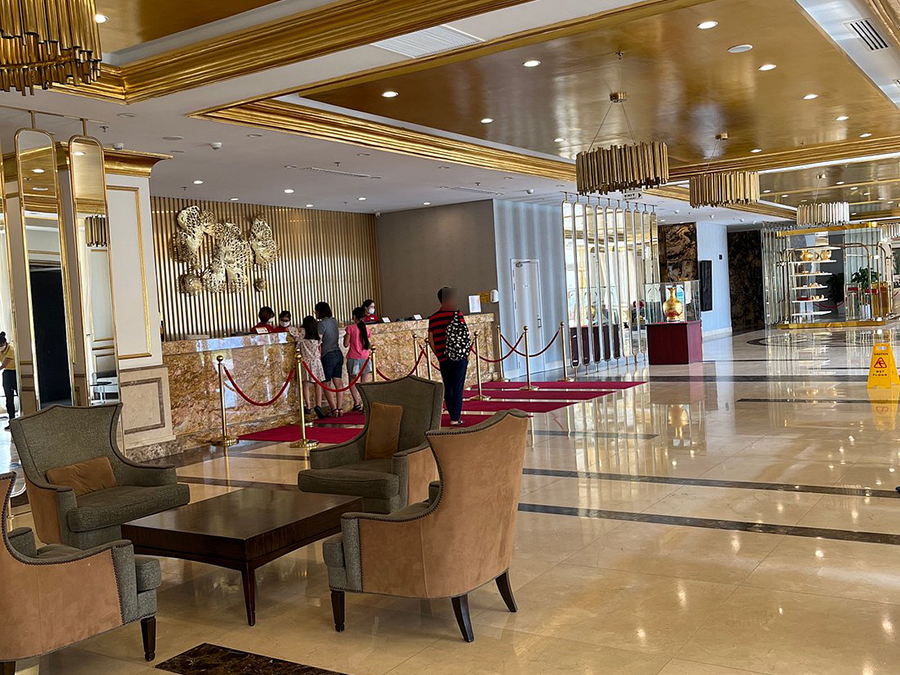 화려한 조명: 로비에는 화려한 조명이 설치되어 있어 고급스러운 분위기를 연출합니다.